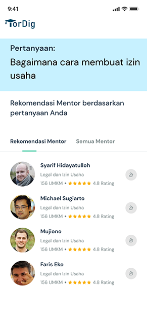 Mitra Mentor TorDig tidak hanya kompeten dan berpengalaman, namun juga memiliki kecintaan dalam memajukan UMKM Indonesia. Kami sangat senang dapat membantu usaha anda.
